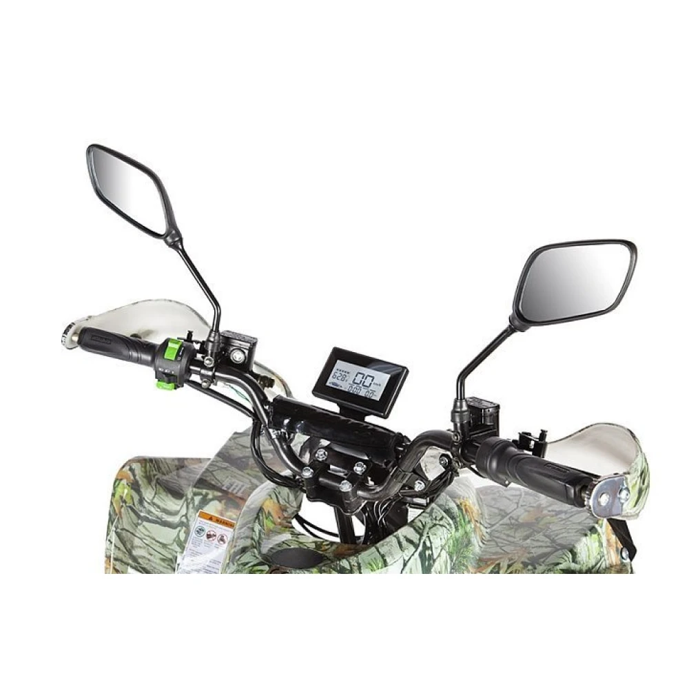 Электроквадроцикл укомплектован багажником, зеркалами заднего вида, охранной сигнализацией, безотказной тормозной системой.