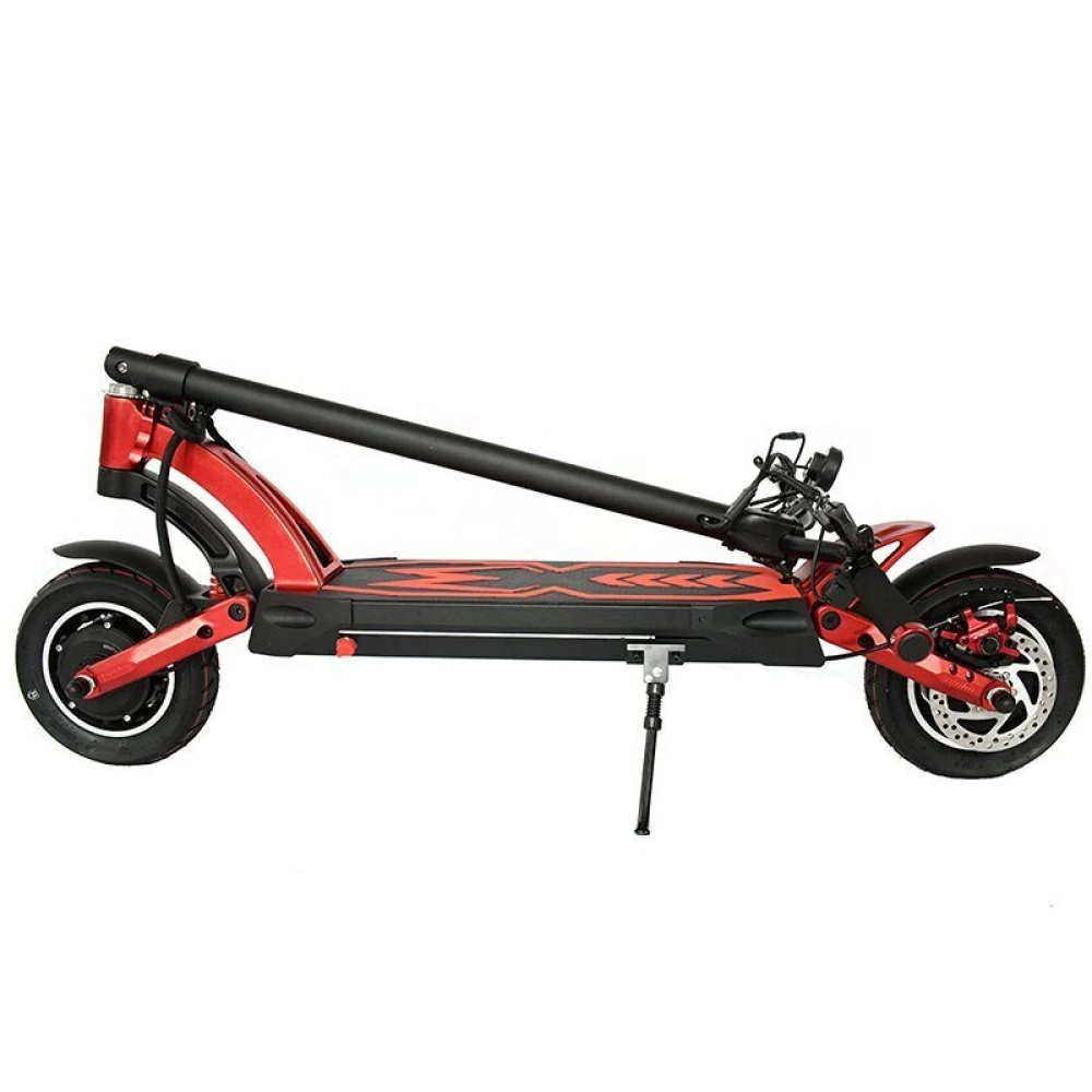 При весе 28 кг грузоподъемность техники составляет 130 кг, рассчитана на подростков и взрослых райдеров. Современная яркая модель создана для победителей, стремящихся к совершенствованию, познанию нового. Техническая часть электросамоката оснащена по максимуму, имеет все необходимое для скоростной езды, способна выжимать 65 км/час и преодолевать на одной подзарядке до 80 км пути.