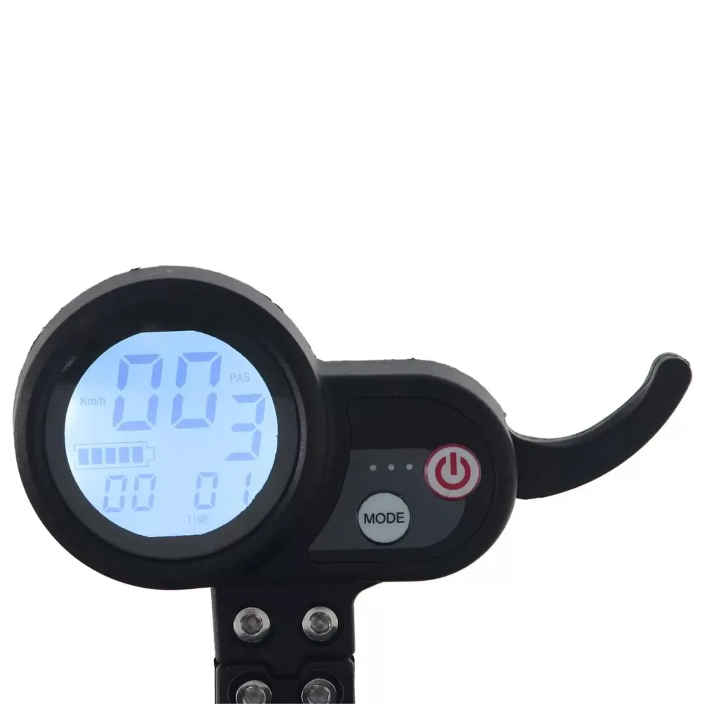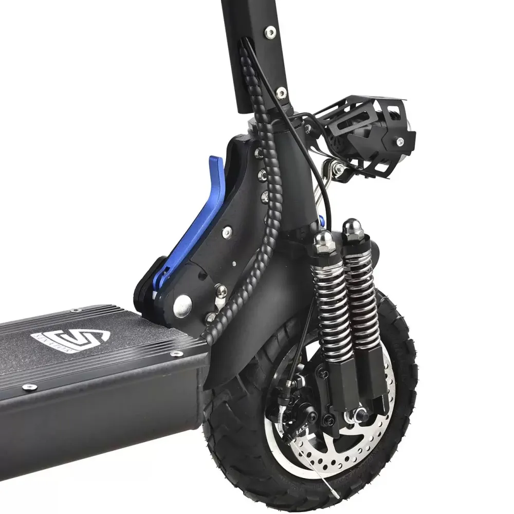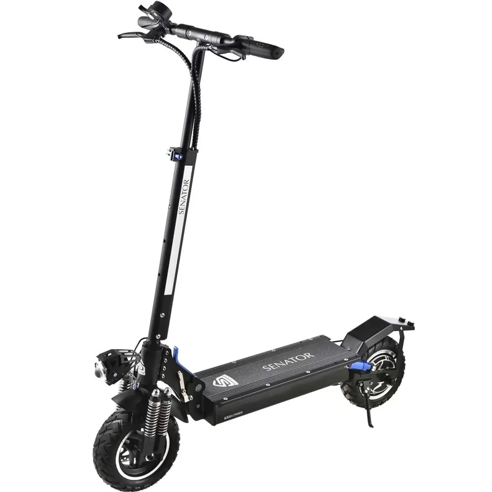 Заряжается он от электросети до 100% за 7-8 часов. У этой модели десятидюймовые колеса и два пневматических амортизатора. В горку максимальный угол подъема составляет 20 градусов. LCD панель поможет вам следить и контролировать скорость, и уровень зарядки, а также переключать режимы езды. На электрическом самокате Mizar Mustang (SN10MUST) можно ездить даже ночью при помощи передней и задней фары.