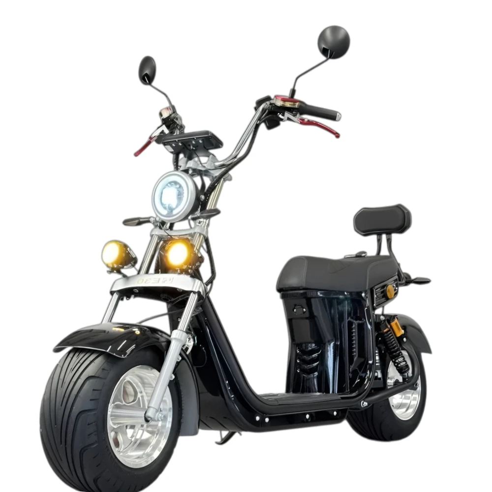 Электроскутер Citycoco GT E30 в черном глянцевом цвете — это универсальное средство передвижения. С мощностью 3000W и задним приводом, он обеспечивает отличную динамику и маневренность на городских улицах. Благодаря двухколесной конструкции и надувным колесам диаметром 18 дюймов, скутер уверенно держится на дороге, что делает его идеальным для поездок по различным покрытиям.Съемный аккумулятор с напряжением 60V позволяет преодолевать расстояние до 50 км на одном заряде, что делает его идеальным вариантом для ежедневных поездок. Время зарядки составляет всего 5 часов, что обеспечивает быструю готовность к новым приключениям. Кроме того, в конструкции предусмотрено дополнительное место под аккумулятор, что увеличивает возможности автономной работы.Скутер весит 75 кг и может выдерживать максимальную нагрузку до 200 кг, что делает его подходящим для различных пользователей. Дисковые гидравлические тормоза обеспечивают надежную остановку, а большое мягкое сиденье и амортизаторы гарантируют комфорт даже при длительных поездках.Дополнительно, Citycoco GT E30 оснащен бортовым компьютером, зеркалами, звуковым сигналом, фарой и поворотниками, что повышает безопасность и удобство. Большая дека под ноги и прочная конструкция делают поездки еще более приятными.Электроскутер Citycoco GT E30 — это идеальное сочетание стиля, мощности и комфорта для тех, кто ценит удобство и скорость в городской среде.