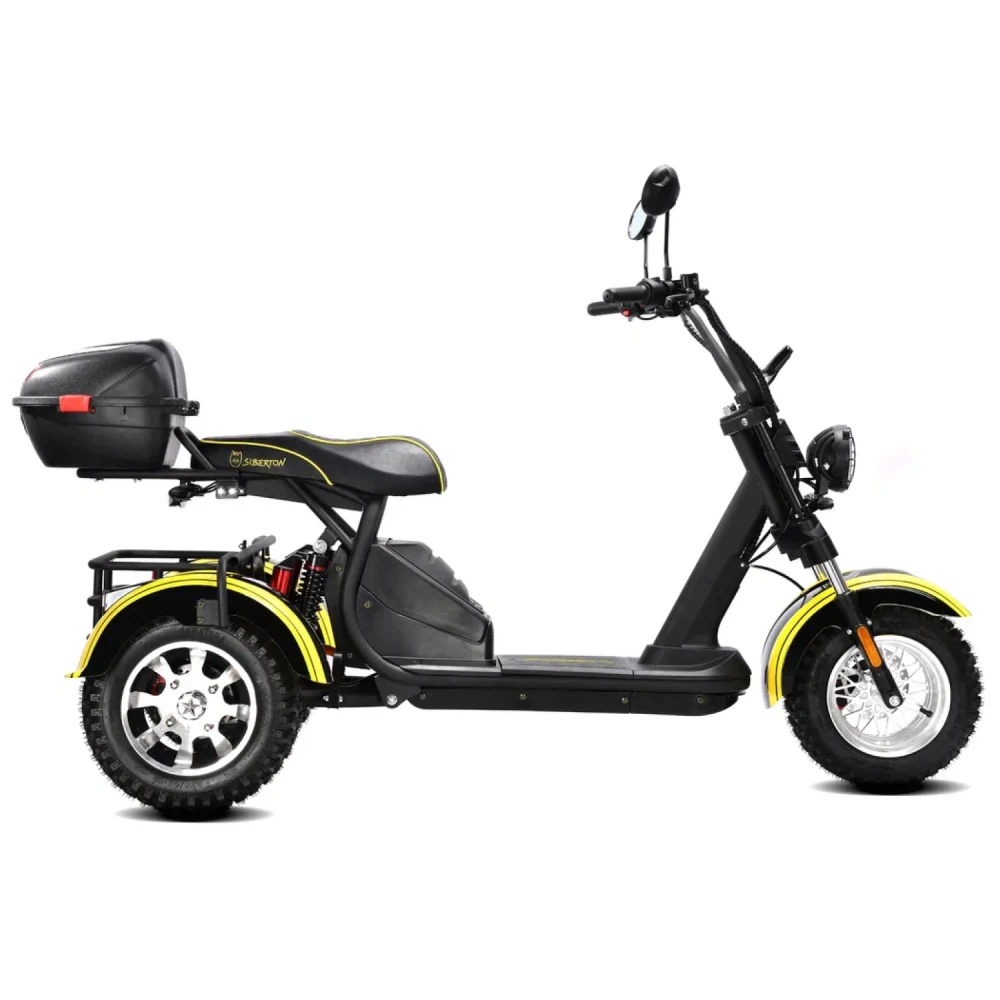 Электроскутер Siberton PRO Trike – это инновационное транспортное средство, сочетающее в себе мощь, практичность и надежную конструкцию, выполненную из высококачественной стали. Благодаря продуманной трехколесной компоновке, данная модель гарантирует стабильность и управляемость даже в условиях городской суеты, а клиренс в 21 см обеспечивает уверенное преодоление неровностей дорожного покрытия.Сердцем устройства является двигатель мощностью 3000 W, который позволяет динамично стартовать и уверенно поддерживать скорость, обеспечивая максимальный пробег до 60 км на одном заряде. Поддерживаемый аккумулятором типа Li-ion с емкостью 21 Ah и рабочим напряжением 60 V, этот скутер быстро восстанавливает заряд за около 7 часов, что делает его идеальным для ежедневного использования.Система безопасности представлена надежными дисковыми гидравлическими тормозами, которые гарантируют своевременное и точное торможение в любых ситуациях. Дополнительное оснащение, включающее поворотники и сигнализацию, повышает видимость на дороге и обеспечивает максимальную защиту водителя.Особое внимание уделено комфорту: спереди используются масляные амортизаторы, а сзади – комбинация масляной системы с пружинной подвеской, что позволяет минимизировать влияние дорожных неровностей на качество поездки. С общей массой 106 кг и компактным размером, электроскутер Siberton PRO Trike удачно сочетает в себе прочность и функциональность, делая его надежным выбором для тех, кто ценит комфорт, мощность и безопасность в одном устройстве.