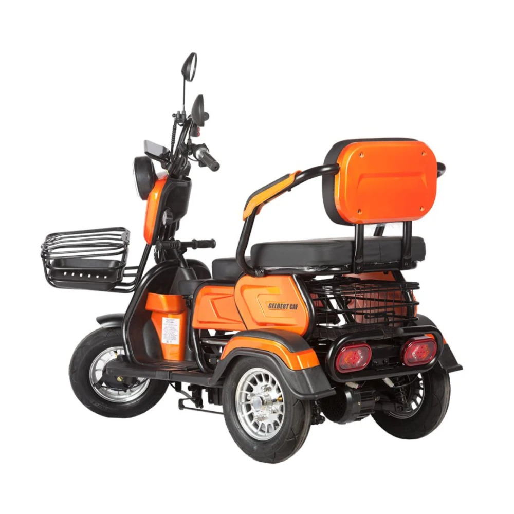 • Дополнительное оснащение: Большой LCD-дисплей информирует о текущих параметрах движения, а яркая светодиодная фара и поворотники обеспечивают отличную видимость в темное время суток. Также модель оснащена встроенной сигнализацией для дополнительной защиты, а передняя металлическая корзина добавляет удобства при перевозке небольших вещей.Электротрицикл Rutrike Gelbert Caf – универсальное решение для тех, кто ценит практичность и современный дизайн. Он станет отличным выбором для ежедневных поездок по городу, позволяя с комфортом перемещаться в условиях интенсивного городского трафика.