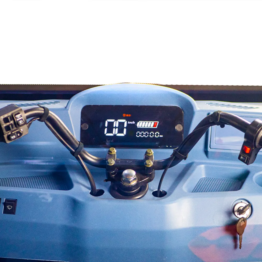 Темно-синий цвет трицикла придает ему стильный и привлекательный внешний вид. Этот цвет подчеркивает его профессиональное использование и делает его заметным на дороге.