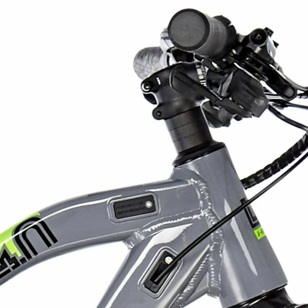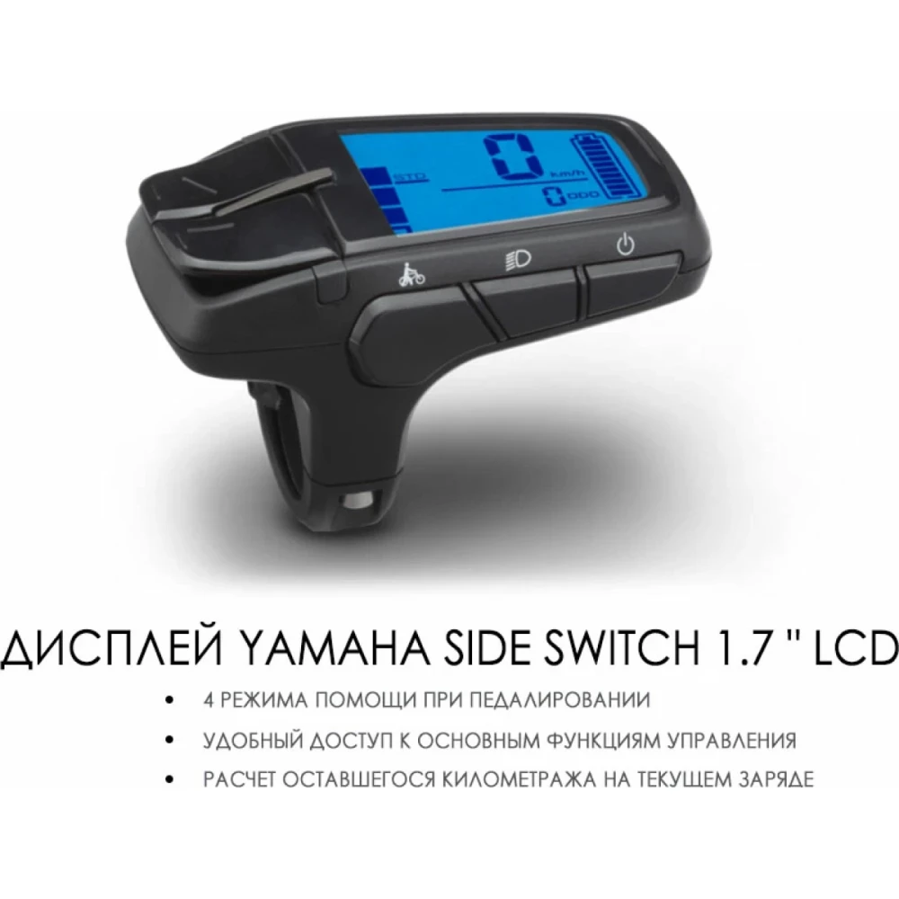 12 скоростная техника оснащена фирменными тормозами Шимано, гарантирующими безопасность езды и своевременность остановки. Амортизационная маслянно-воздушная вилка вместе с внедорожными колесами не знает препятствий при передвижении по бездорожью, глине, песку и другой проблематичной местности. Производитель заверяет, пользоваться электровелосипедом можно во всесезонье. Комфортное мягкое седло рассчитано на продолжительные передвижения в жестких условиях. Информационный дисплей, размещенный на рулевой части предоставляет информацию о скоростных параметрах, пробеге, заряде батареи и других важных для райдеров показателей. Стильный электровелосипед представлен цельной конструкцией, выглядит стильно и современно.