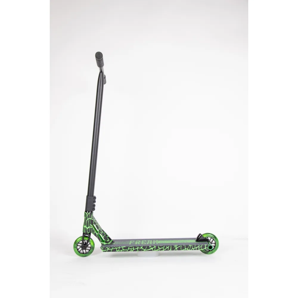 САМОКАТ FREAK 2021 в черно-зеленом цвете зарекомендовала себя лидером продаж этого года. Трюковая модель поразила безотказностью и послушностью при выполнении трюков и опасных маневров. Характеристики модели рассчитаны на пользователей с параметрами роста 163-180 см, начинающих и продвинутых райдеров, стремящихся совершенствоваться в спорте.