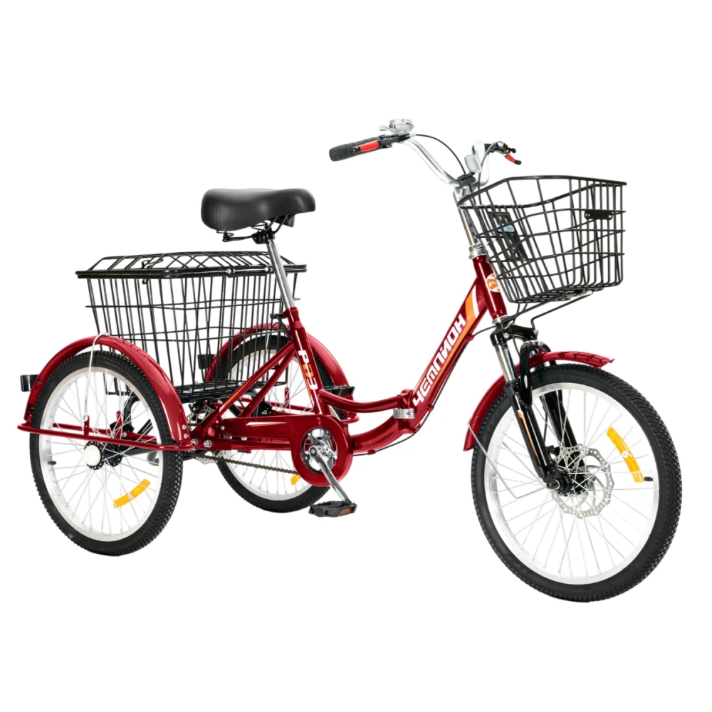 Трехколесный велосипед для взрослых РВЗ Чемпион 20" 1 скорость (складной) красный